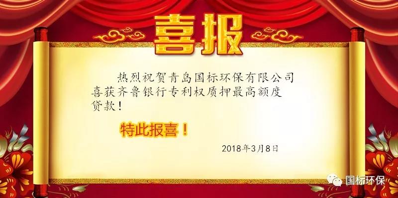 近日,青島國標環(huán)保有限公司喜獲齊魯銀行專利權質(zhì)押首家最高額度貸款。